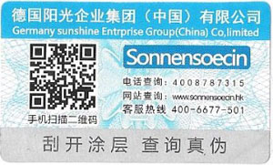 德國陽光企業集團防偽查詢標簽